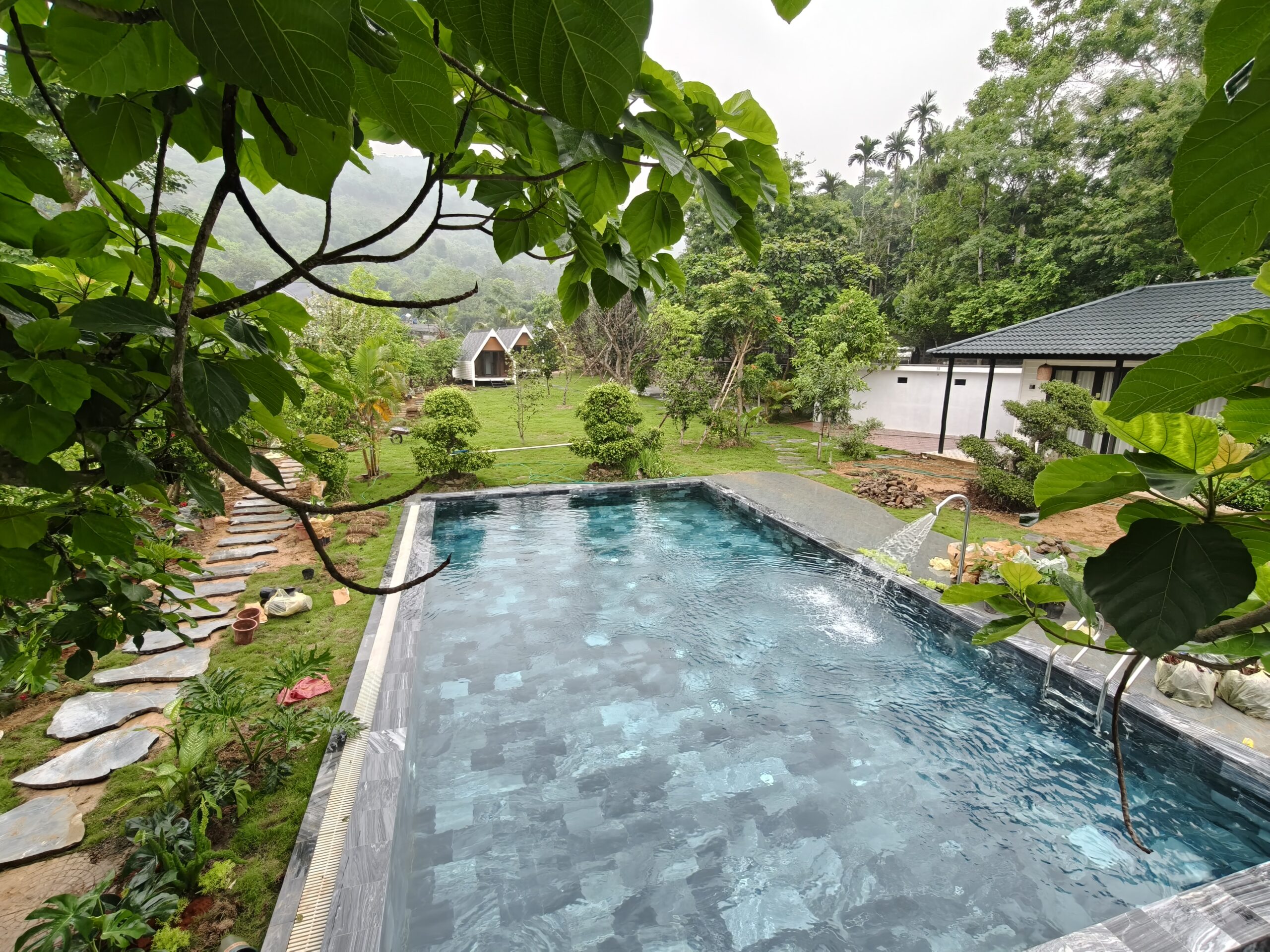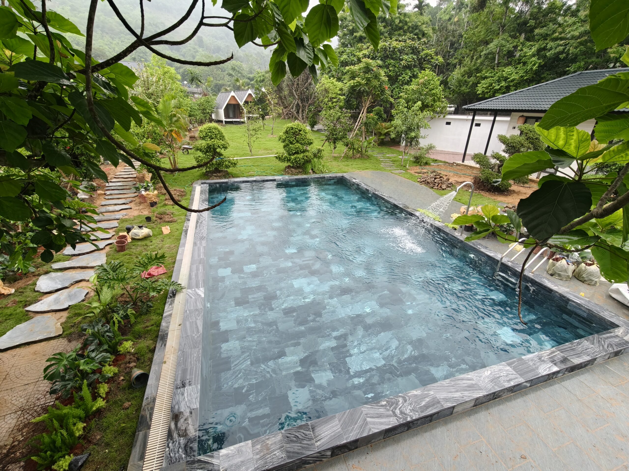 - Hạng mục thi công: Thi công bể bơi khu nghỉ dưỡng ngoài trời